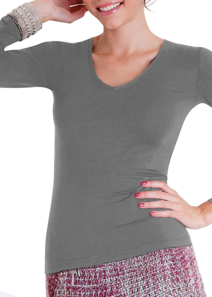 Riktigt skön tröjor i en fantastiskt mjuk bomullskvalité från Cotonella. Långärmad mörkgrå tröja som är v-ringad.